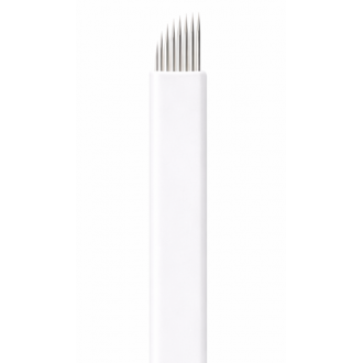 · Se asocia la utilización de cada tipo de aguja a un tipo de pelo determinado. 7-P para pelos cortos, 12-P para ceja estándar. 14-P para pelos largos, 18-P biseladas para pelo ancho; 18-P con forma de U para pelos curvos (son redondas a diferencia del resto que presentan forma biselada, presentan sistema de lengua de gato).